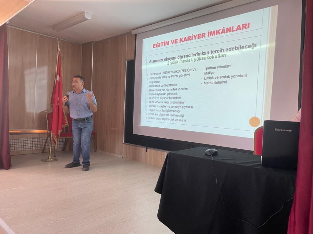 3 – 4 Eylül tarihlerinde 9. Sınıf öğrencilerimize yönelik “Uyum Haftası Etkinliklerimizi” gerçekleştirerek öğrencilerimize okulumuzu gezdirip tanıttık , seminer düzenledik. 5 Eylül tarihinde ise 9. Sınıf velilerimize yönelik seminer düzenledik. Düzenlediğimiz seminerlerde hem öğrenci hem de velilerimize yönelik özellikle okulumuzdaki alanları/bölümleri tanıttık. Yanı sıra Ortaöğretim Kurumları Yönetmeliği ( özellikle alan tercihi, devamsızlık, sınıf geçme ,disiplin cezaları vd. ) hakkında öğrenci ve velilerimizi bilgilendirdik. Disiplin Cezaları Hakkında Bilgilendirme broşürü ve “Anadolu Meslek Programı 9’uncu Sınıfa Yerel Yerleştirme İle Kayıt Olan Öğrencilerin Alana Geçiş Tercih Bildirim Formu” nu dağıttık. Yeni eğitim öğretim yılımızın eğitimin tüm paydaşlarına hayırlı uğurlu olmasını temenni ederiz.